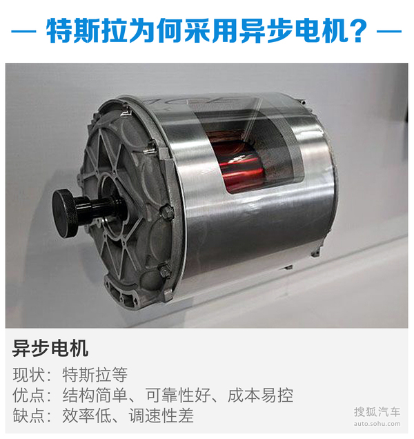 相比于永磁同步電機,異步電機的優點是成本低,工藝簡單、運行可靠耐用、維修方便,而且能忍受大幅度的工作溫度變化。反之,溫度大幅變化會損壞永磁同步電動機。盡管在重量和體積方面,異步電動機并不占優勢,但其轉速范圍廣泛以及高達20000rpm左右的峰值轉速,即使不匹配二級差速器也能夠滿足該級別車型高速巡航的轉速需求,至于重量對續航里程的影響,高能量密度的18650電池能夠“掩蓋”電機重量的劣勢。此外,異步電機穩定性也是被特斯拉選用的重要原因。
