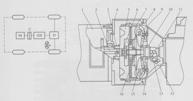 C-離合器??D-差速器??GB-變速器??M-驅動電機