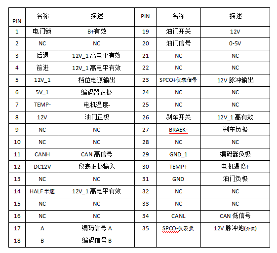 電機控制器接口定義