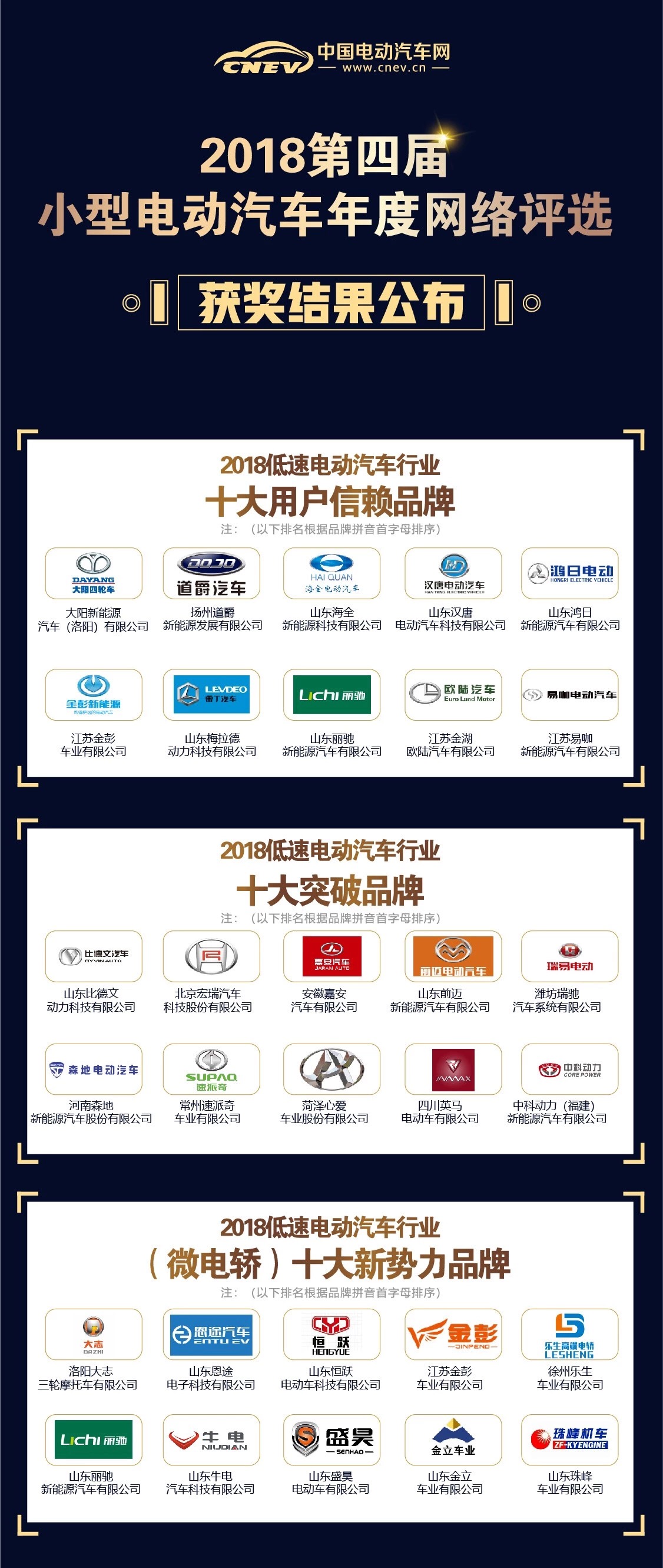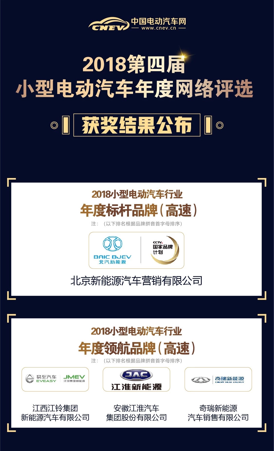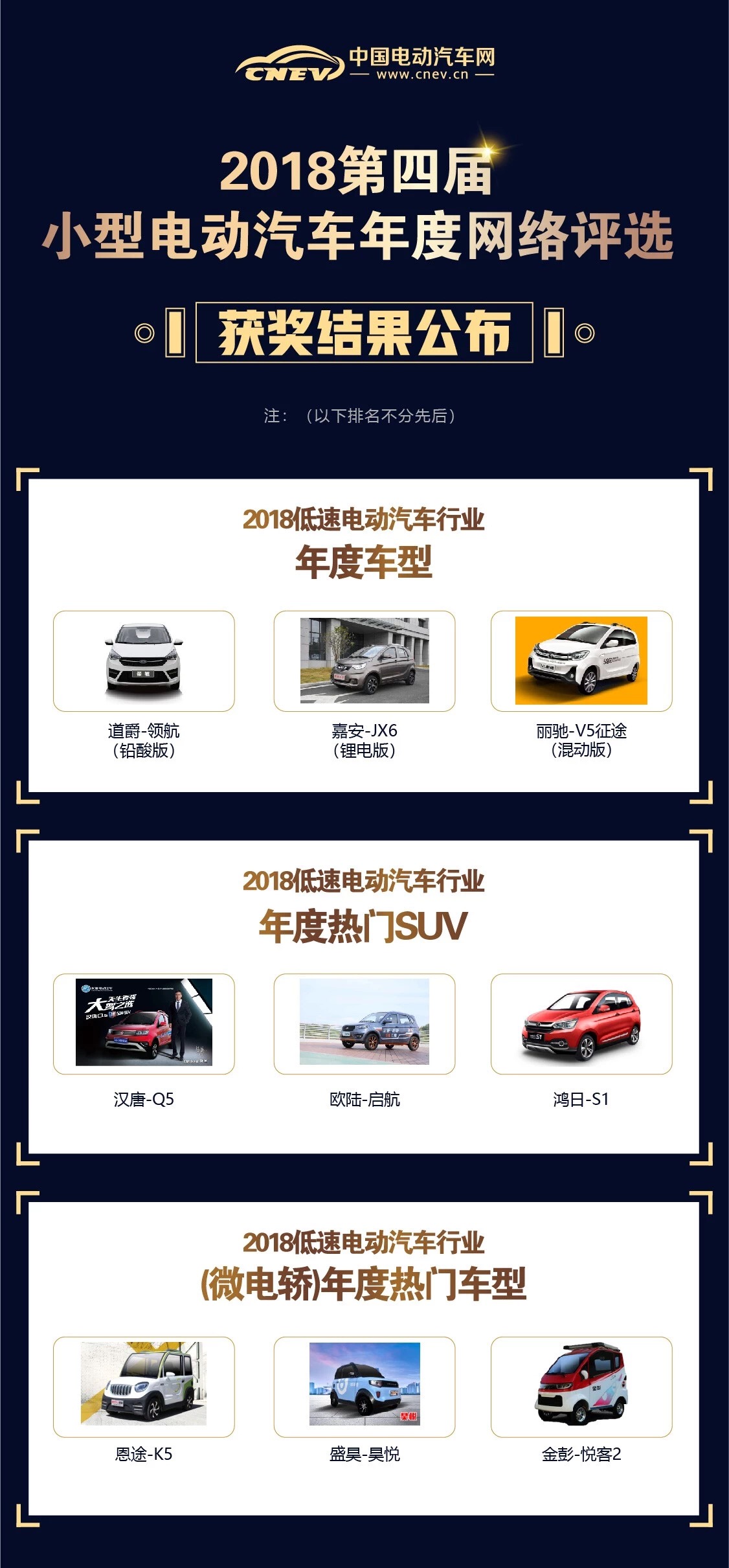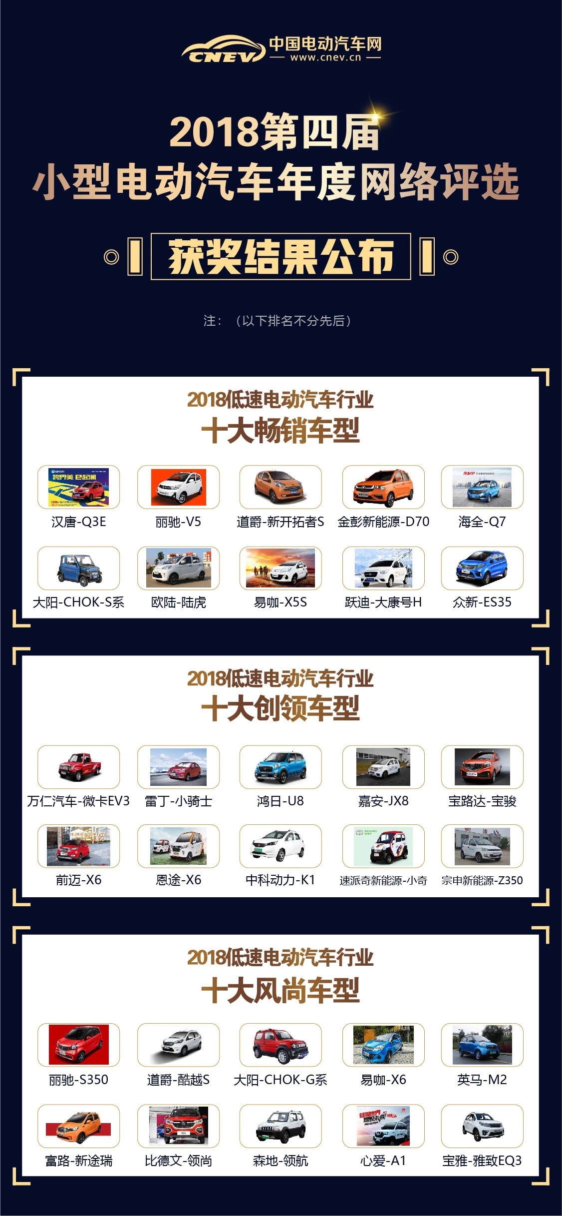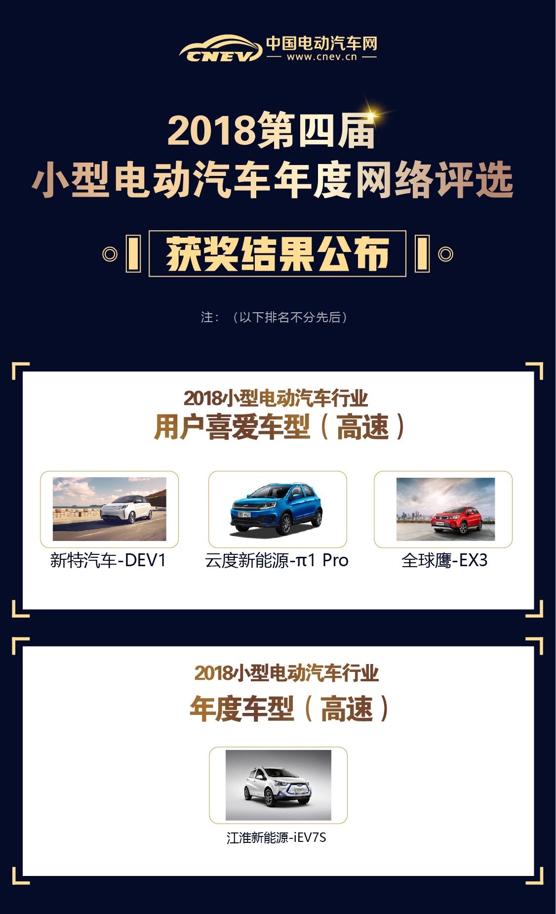 12月6日,備受關注的2018第四屆小型電動汽車年度網絡評選獲獎名單正式出爐!
