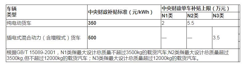 (一)新能源貨車補貼標準。具體如下: