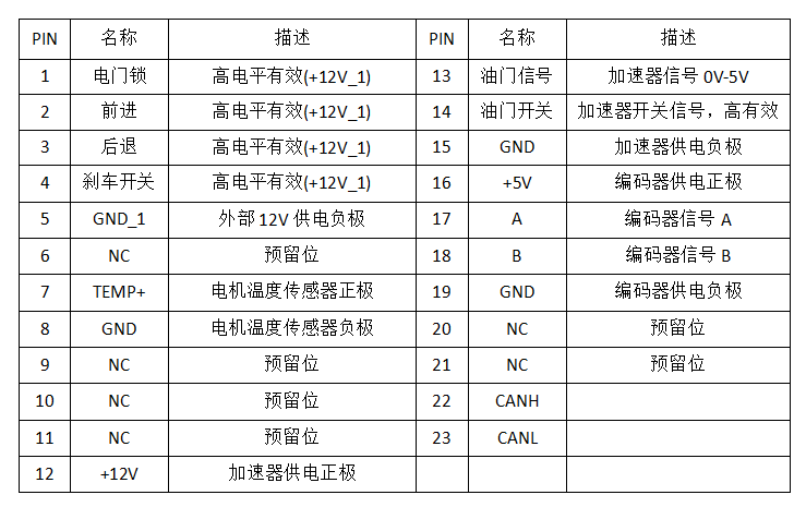 電機(jī)控制器接口定義